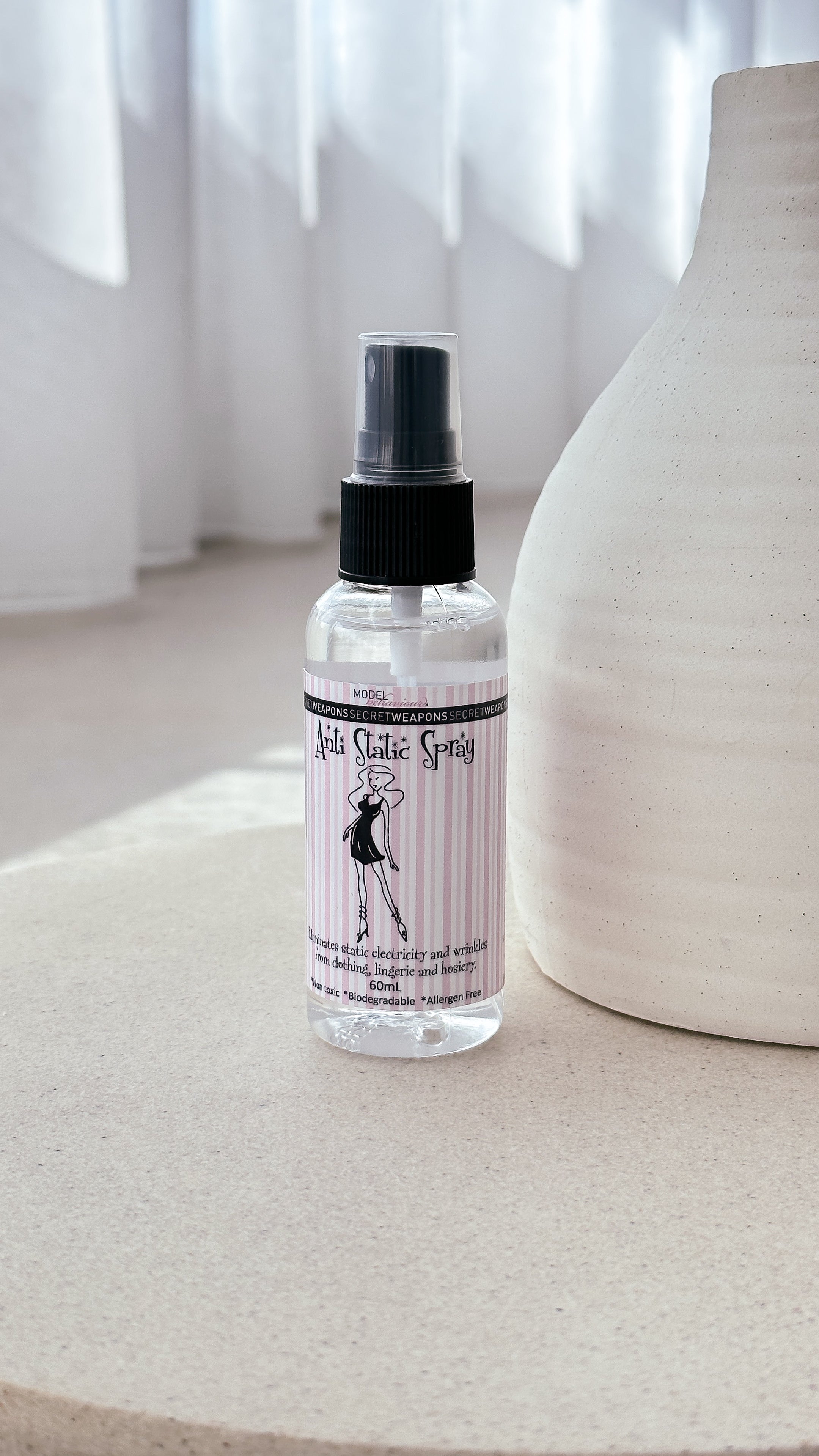Non toxic, Biodegradable, Allergen Free and in the cutest 60ml, purse sized bottle, Anti Static Spray will ensure that static doesn’t take the electricity out of your best outfit!