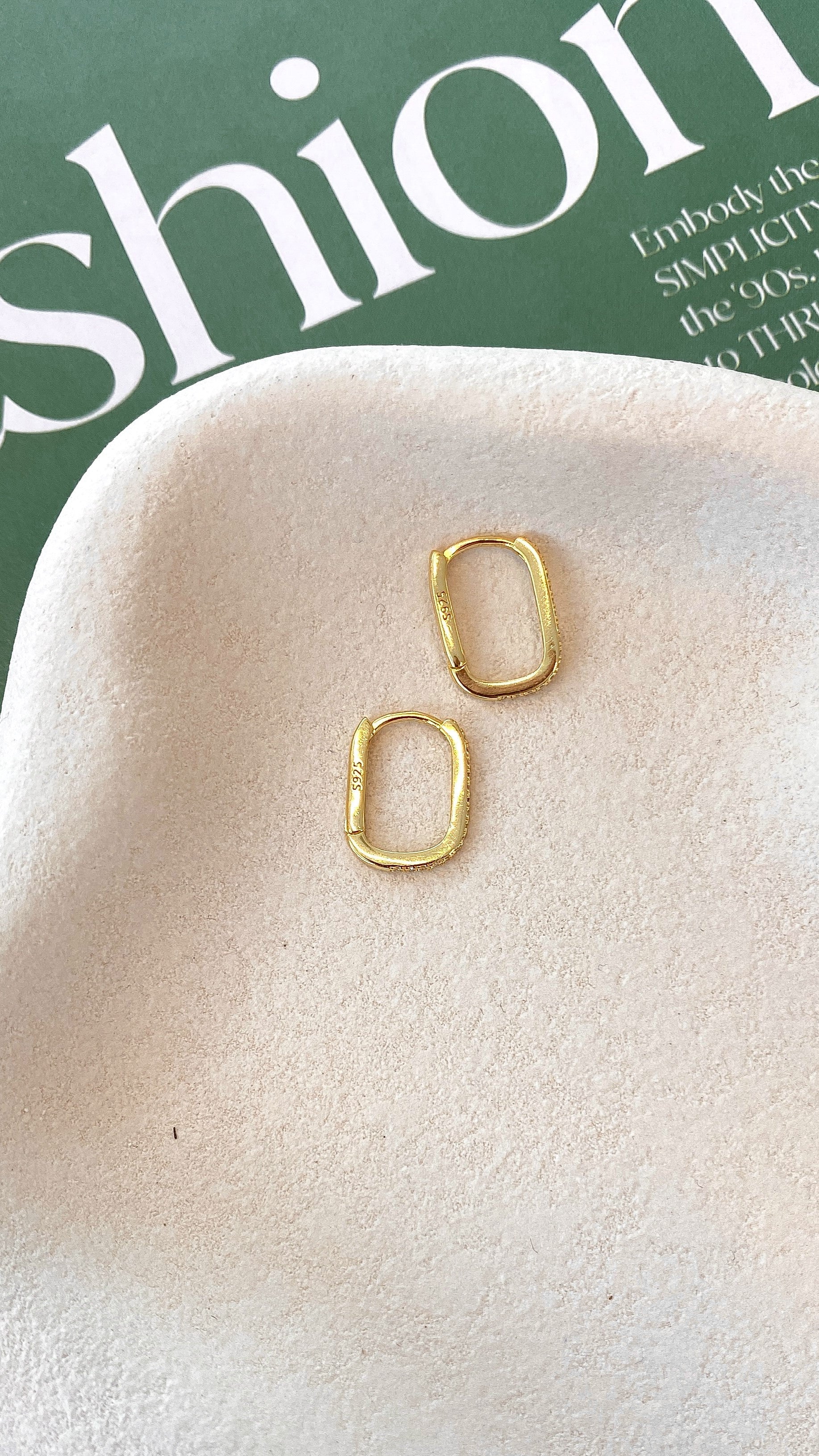 Dress up your outfit with the Ashlyn Sleepers, featuring gold oval hoops with gemstone details.