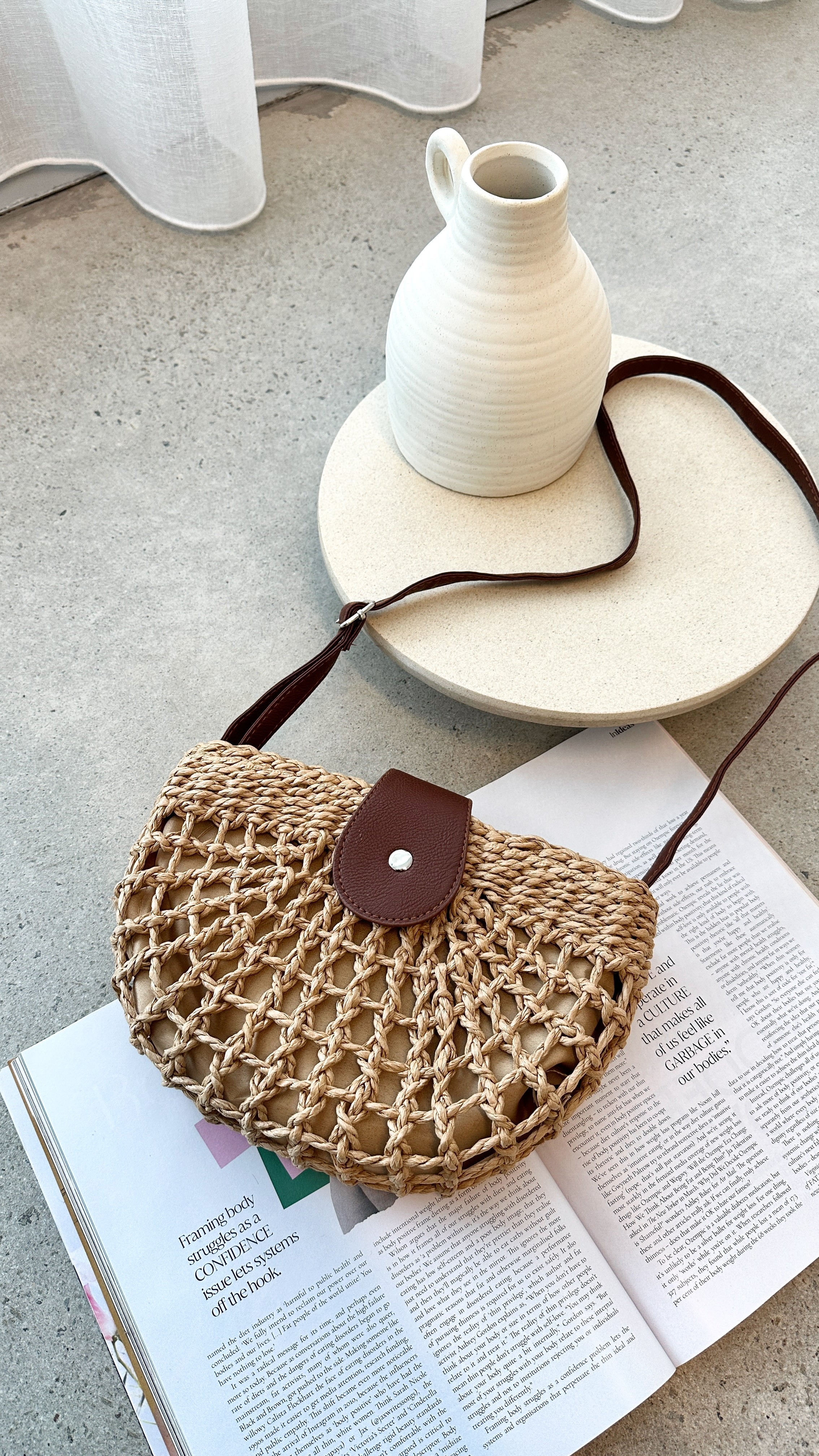 - Small woven paper straw bag